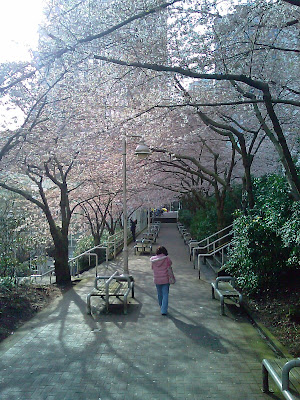 Awww.. what a nice photo. I miss walking underneath those cherry blossoms going to work, and back home. Even with my hayfever!